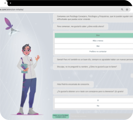 Acceso a diagnóstico y atención clínica con MHAITE: MHAITE es una plataforma de Cetep Empresa con IA. Ofrece diagnósticos dinámicos y seguimiento continuo. Esto evita la tercerización de servicios y asegura la continuidad en la atención.